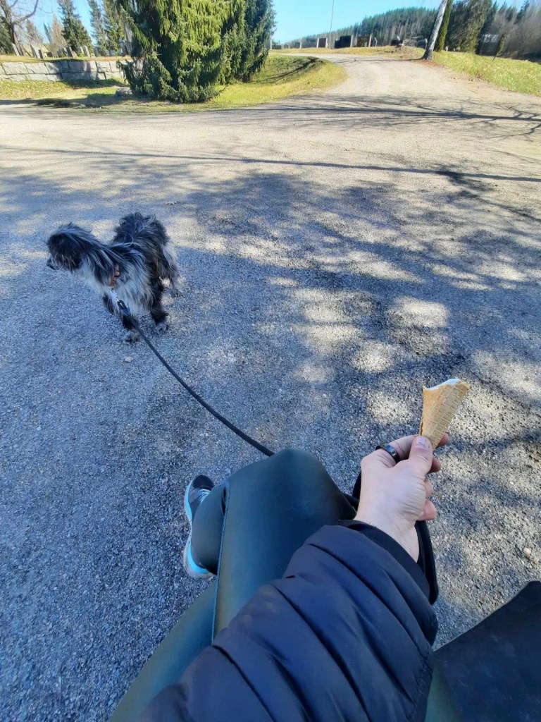Tilanteissa on hyvä huomioida riittävä aika. Kyseisen koiran kohdalla aina auton lähestymiset ja poistumiset rauhassa. Parkkiin tullessa yhdessä hetki kontissa hengailen (tilannetta tasaten).