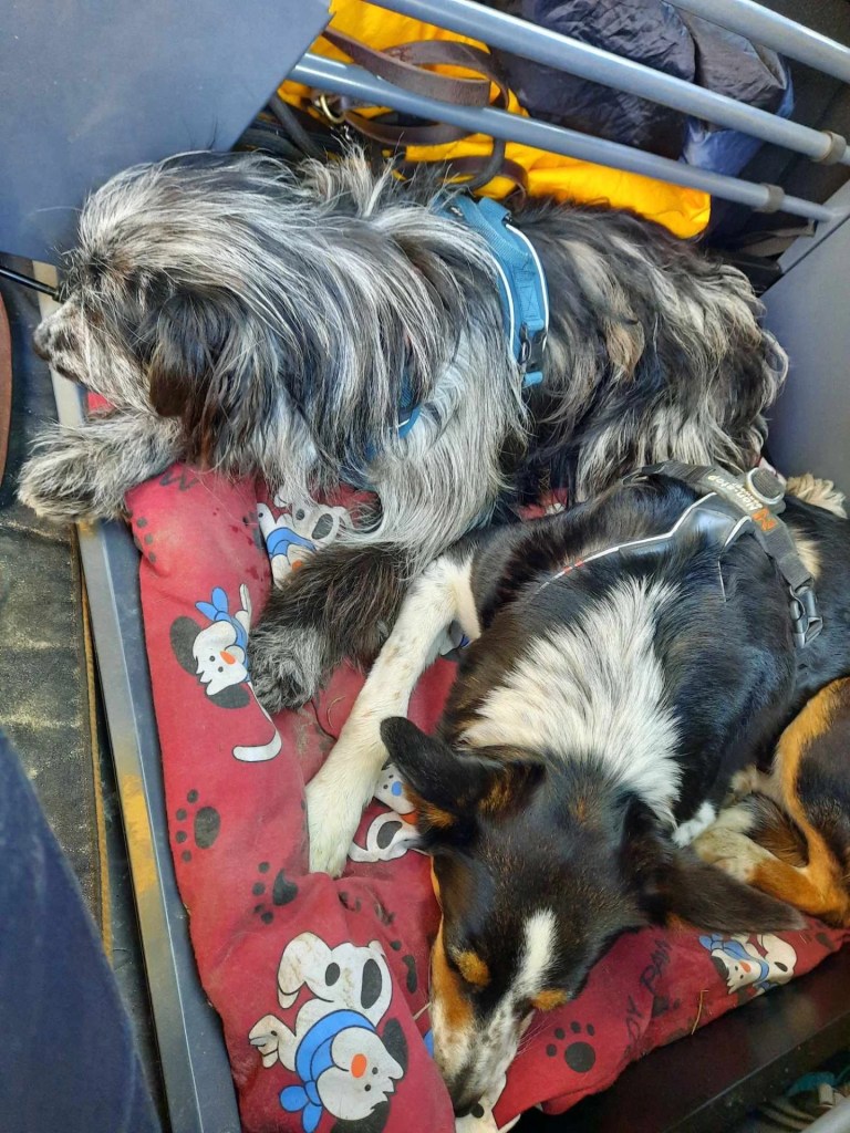 Tämän jälkeen koira lähti itsenäisesti lähestymään konttia. Lähdettiin myös kokeilemaan toisen rauhallisesti autossa matkustavan koiran kanssa samassa boxissa matkustamista, koiran itse hakeutuessa samaan aikaan boxiin. Näissä myös super lyhyet matkat alkuun – tilannetta tarkkaillen.